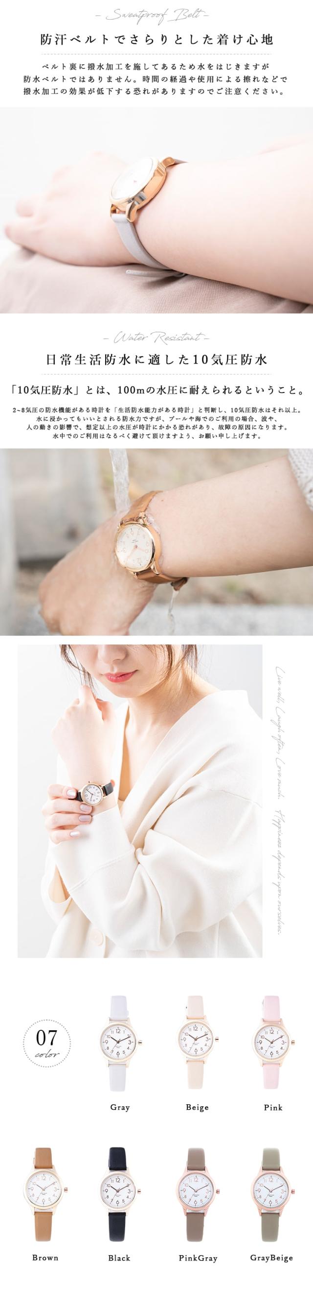 腕時計 レディース 防水 10気圧防水 防汗ベルト 撥水 アースカラー 優しい かわいい おしゃれ きれい シンプル 大人 仕事 通勤 通学 ブランド 20代 30代 40代 見やすい 日本製ムーブメント ウォッチ プレゼント ギフト 女性 メール便送料無料