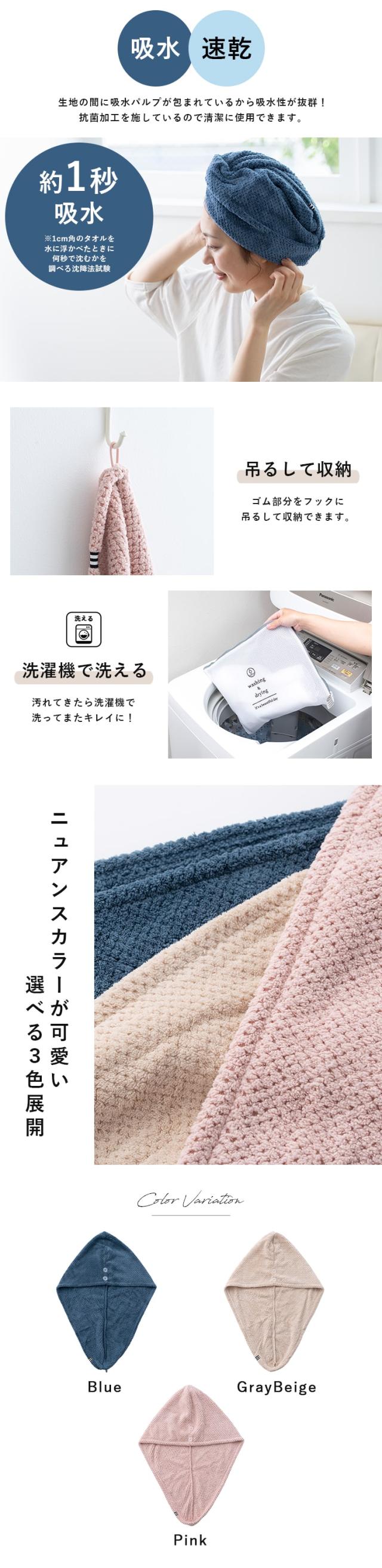 毎日使いで時短が叶う、吸水力抜群のタオルシリーズのヘアドライキャップ