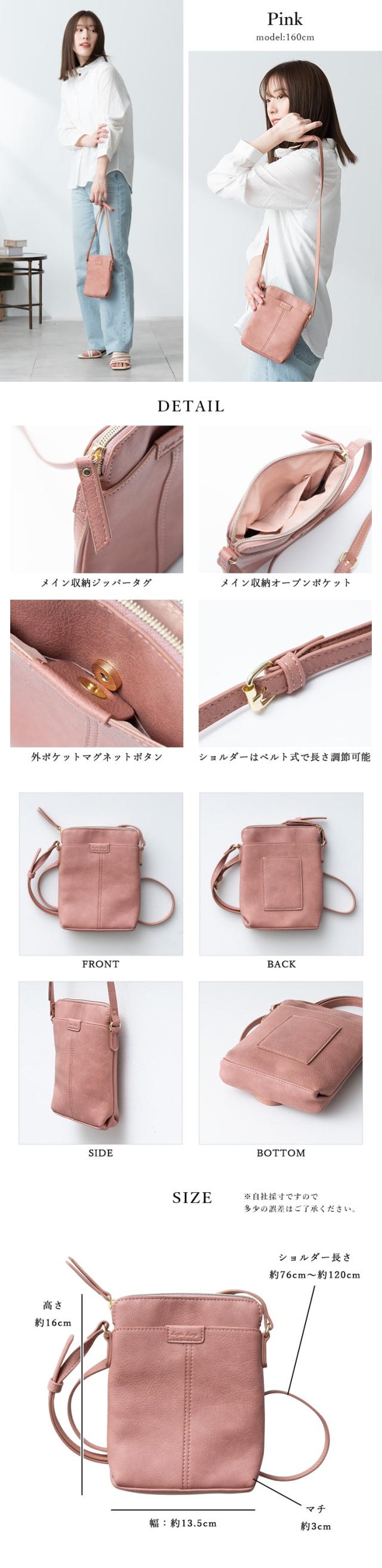 幅広の大きめサイズなのでスマホはもちろん、お出掛け必需品がしっかり入ります。