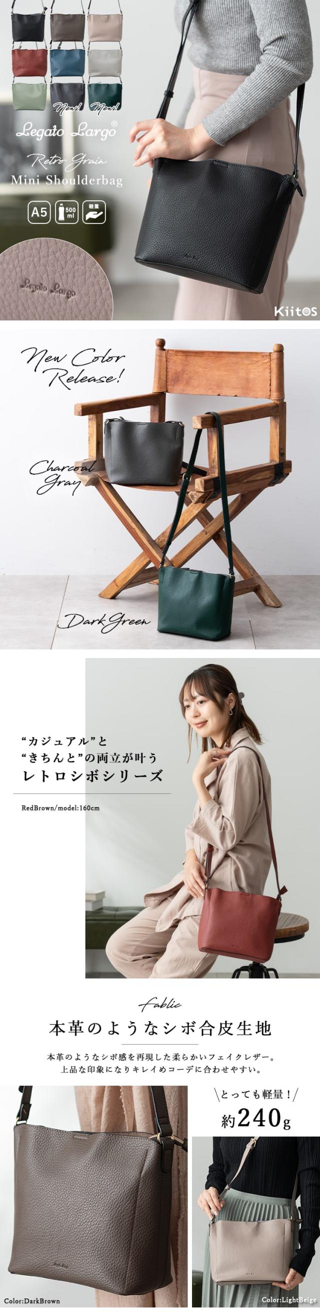 ショルダーバッグ レディース ブランド 小さめ 斜め掛け おしゃれ 大人 軽量 Legato Largo レガートラルゴ a5 シボ合皮 レトロ ペットボトル ファスナー付き マチ広 通勤 通学 ビジネス 学生 上品 かわいい 20代 30代 40代 プレゼント ギフト