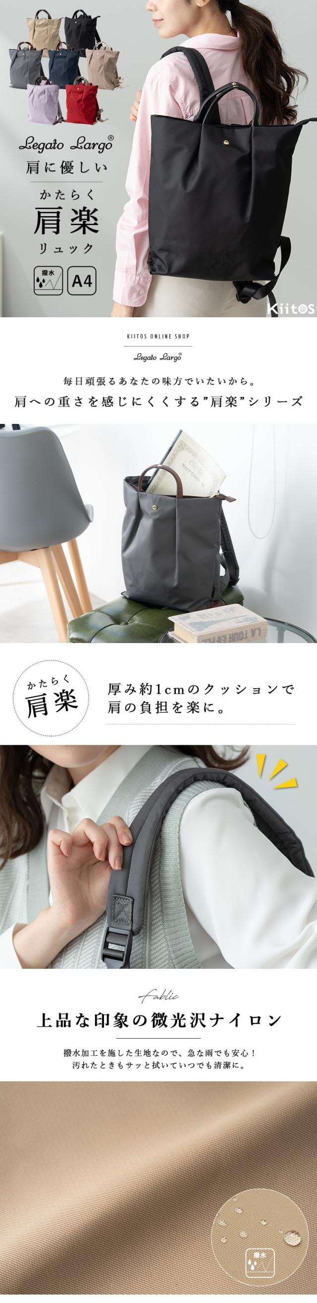 リュック レディース ビジネスバッグ 通勤 ブランド おしゃれ 撥水 軽量 PCバッグ a4 大容量 肩らく ナイロン パソコン 13インチ レガートラルゴ Legato Largo 大きめ 仕切り 通学 OL 鞄 きれい 上品 オフィス 2way トートバッグ 背面ファスナー プレゼント ギフト