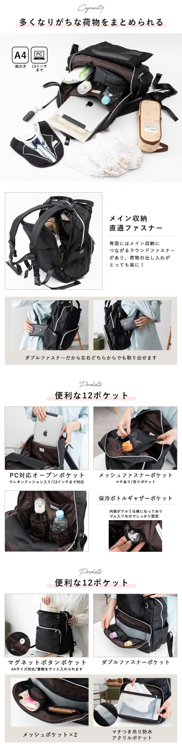 ママもお仕事もこれひとつで。長く使える多機能マザーズリュック。