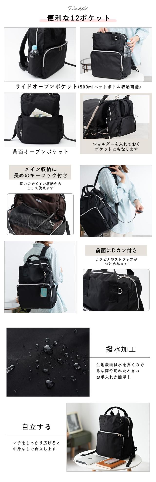 マザーズバッグ リュック マザーズルック 軽量 撥水 背面ファスナー 12ポケット a4 おしゃれ 大容量 自立 ベビーカー 疲れにくい 低反発肩紐 多機能 ブランド 大人 かわいい 保冷ポケット 防水ポケット ママバッグ ビジネス 仕事 通勤 出産祝い プレゼント ギフト
