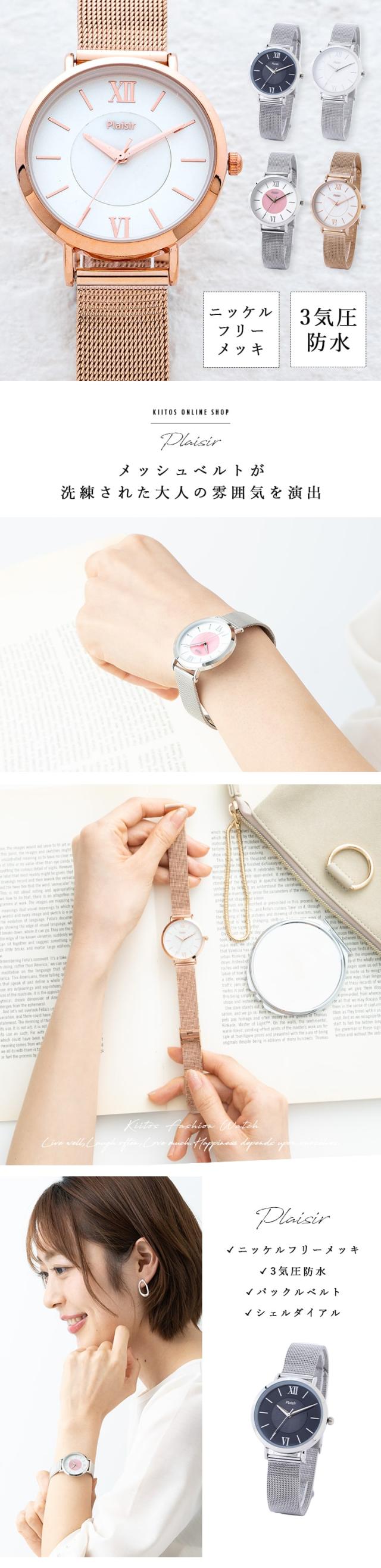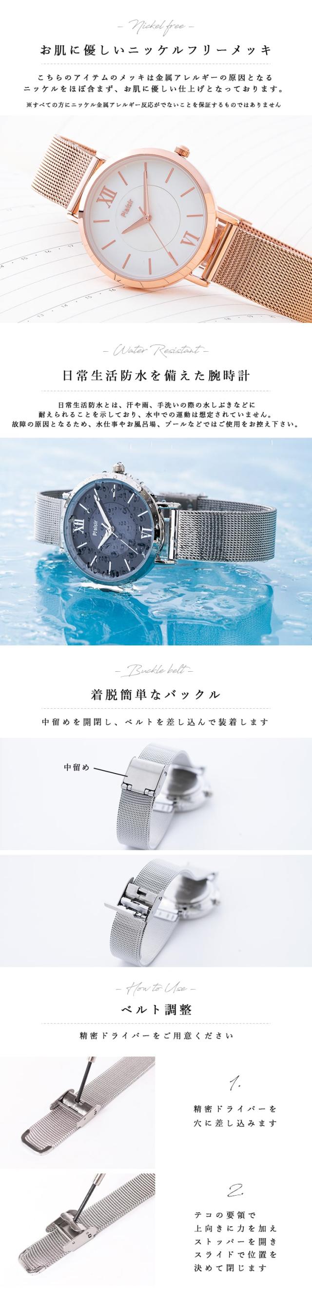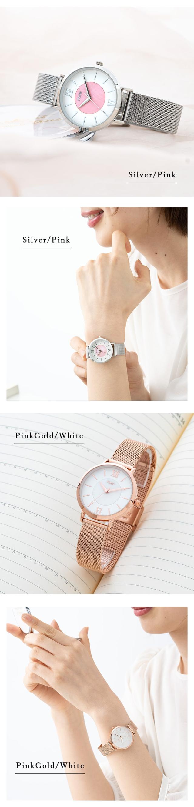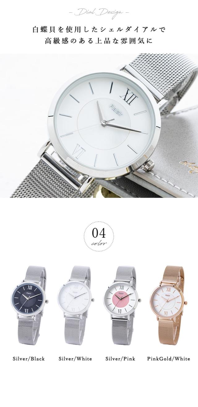 腕時計 レディース メッシュベルト 3気圧防水 ニッケルフリー 金属アレルギー 金属ベルト かわいい おしゃれ 大人 女性 シンプル シェルダイヤル 白蝶貝 プレゼント 母の日 ギフト 1年間のメーカー保証付 メール便送料無料