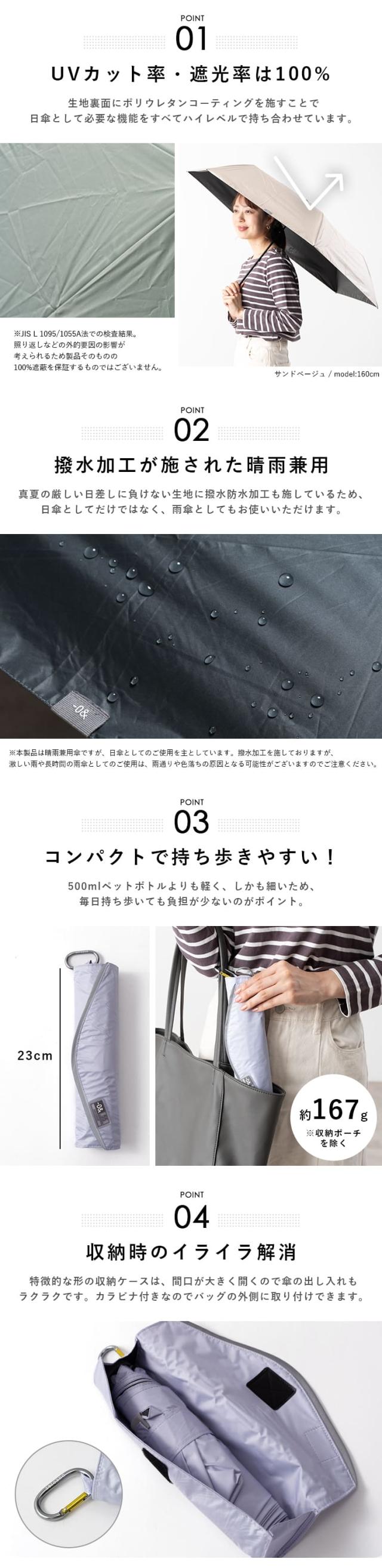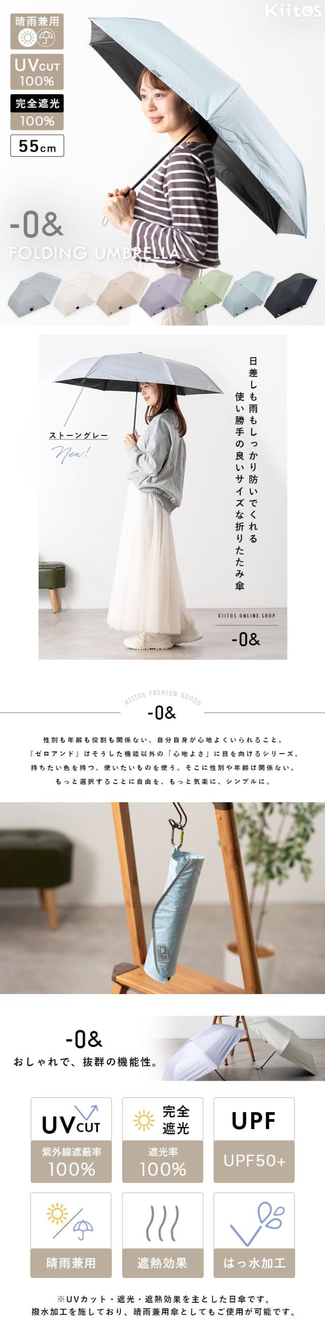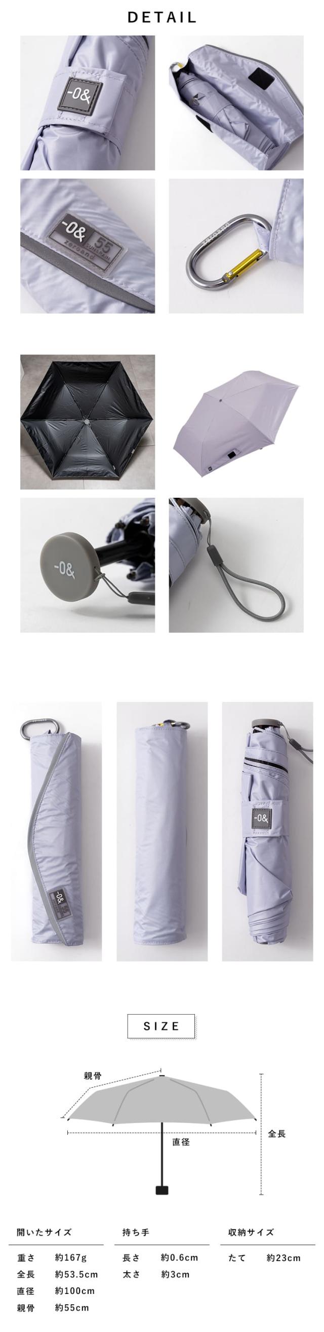 日傘 折りたたみ 軽量 55cm 完全遮光100% UV 晴雨兼用 ブランド -0& ゼロアンド ポーチ付き 遮熱 撥水加工 upf50+ かわいい おしゃれ 日焼け対策 紫外線対策 6本骨 プレゼント ギフト