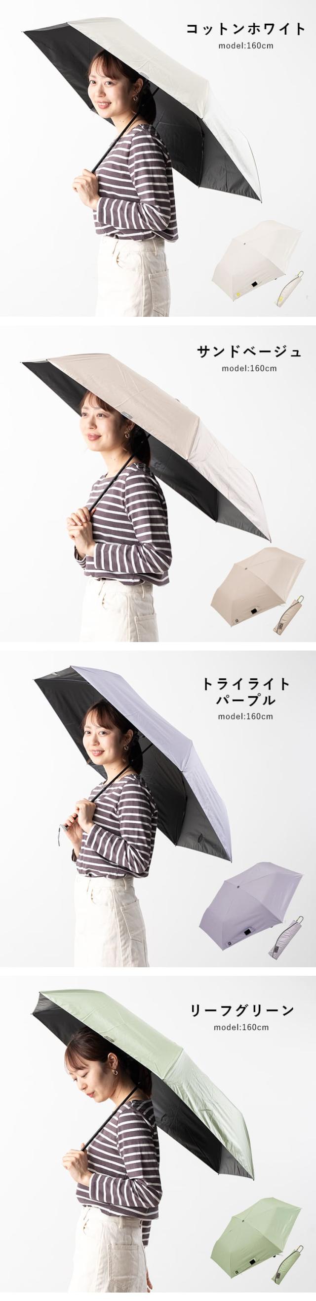 バッグに入れてもかさばらない、軽量折りたたみ日傘。