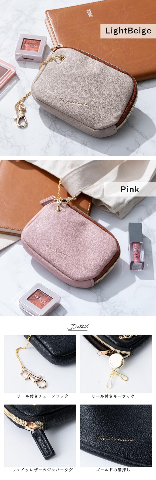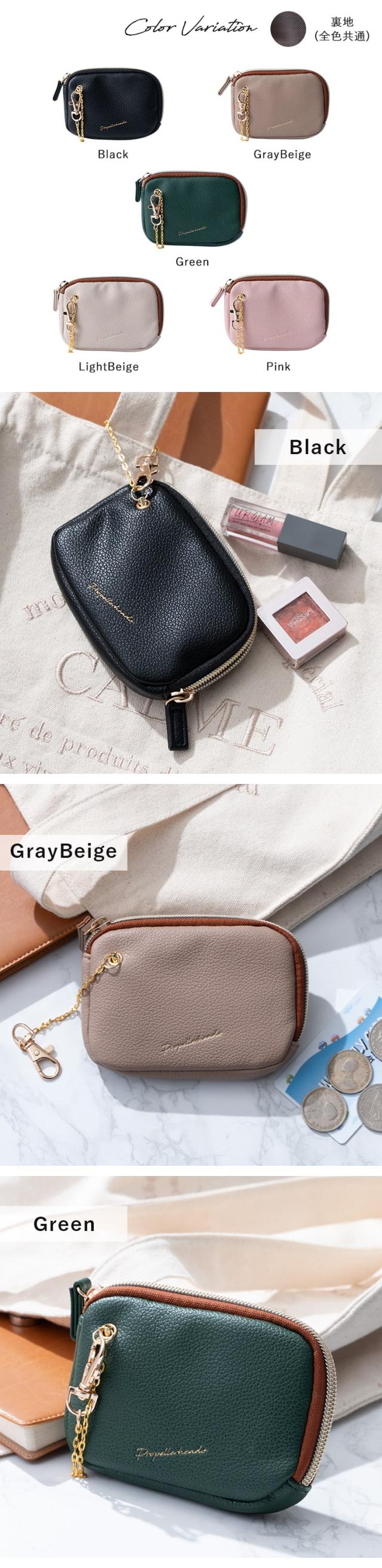 本革のようなシボ感のある合皮にゴールドの箔押しロゴ、さらにゴールドチェーンで大人可愛いミニポーチパスケース♪