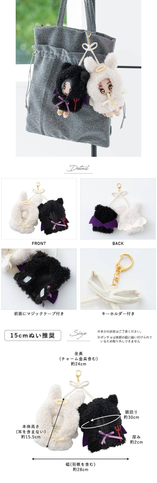 ぬいポーチ ぬい服 ポンチョ 天使 悪魔 ぬいぐるみ 15cm 収納 カラビナ コスチューム 推し活 ヲタ活 マスコット オタ活 持ち運び グッズ おしゃれ かわいい プレゼント ギフト