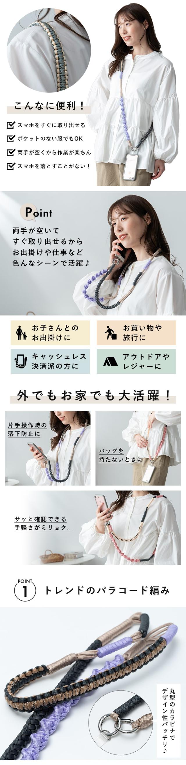 スマホショルダー ストラップ 紐 挟む パラコード ロープ編み iphone android おしゃれ 大人 かわいい 太め 肩掛け 斜め掛け ネックストラップ プレゼント ギフト