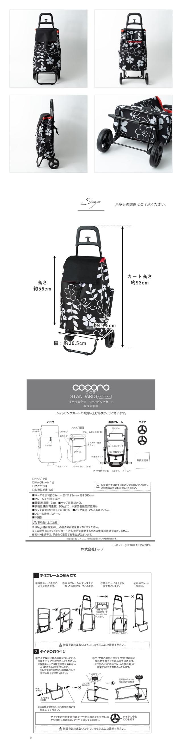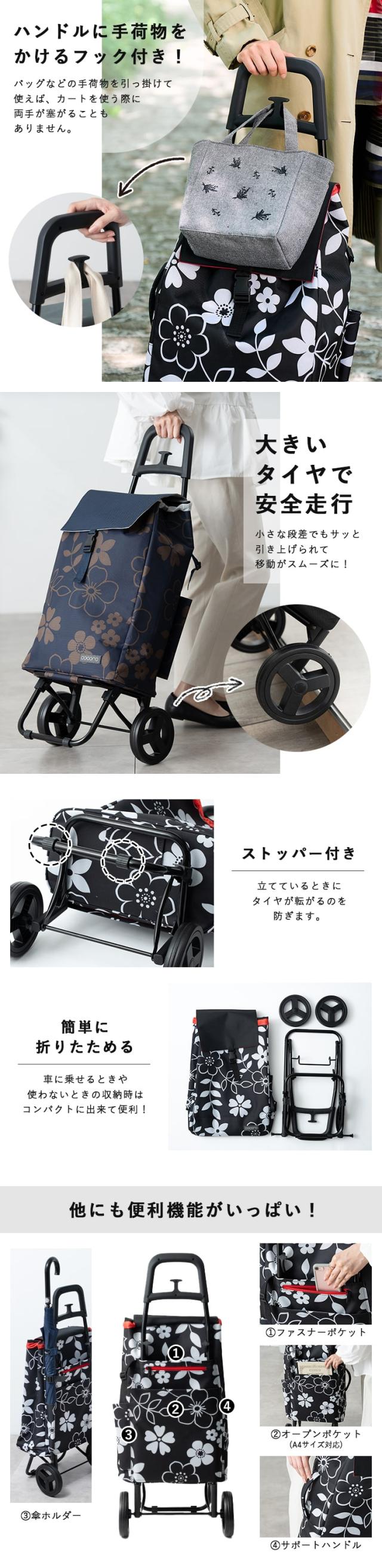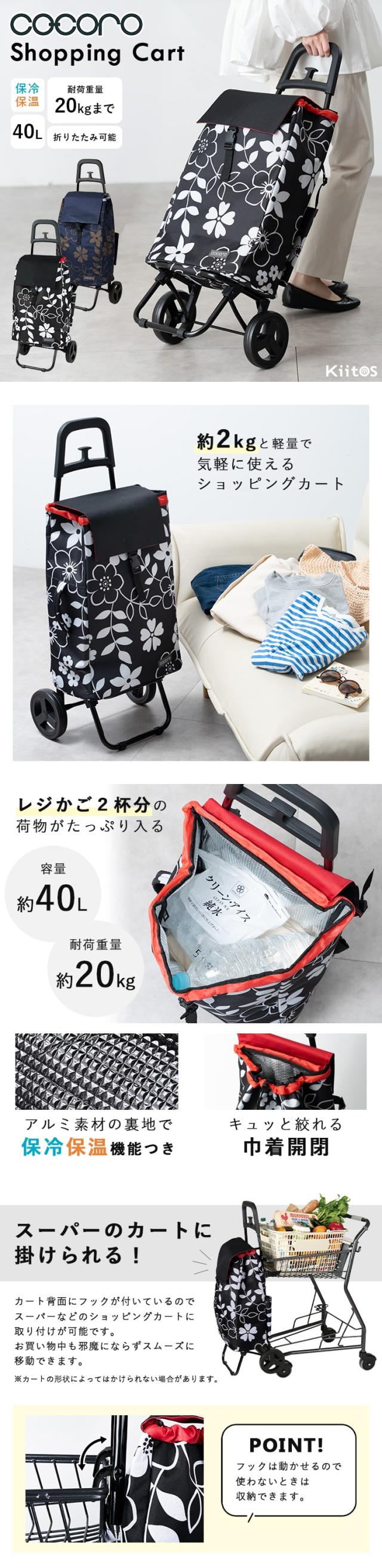 ショッピングカート cocoro 折りたたみ 保冷 保温 40l 軽量 買い物バッグ おしゃれ かわいい 大人 高齢者 コンパクト レジャー アウトドア シンプル 花柄 大容量 プレゼント ギフト