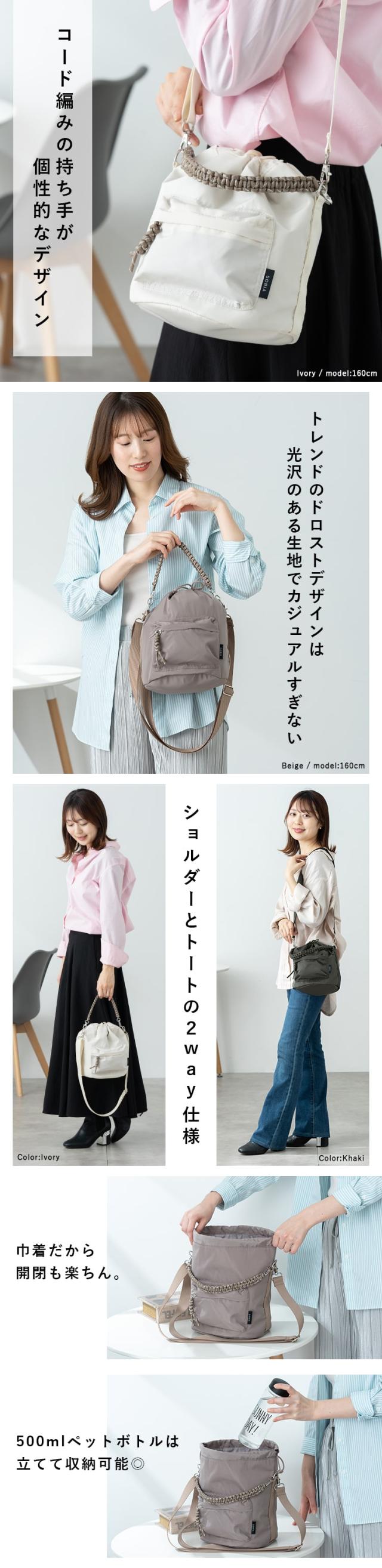 ショルダーバッグ レディース 斜め掛け 大人 巾着 小さめ 2way トート a5 ペットボトル マチ広 軽量 ドロスト ブランド コード編みハンドル ちょうどいいサイズ感 通勤 通学 学生 ナイロン プレゼント ギフト
