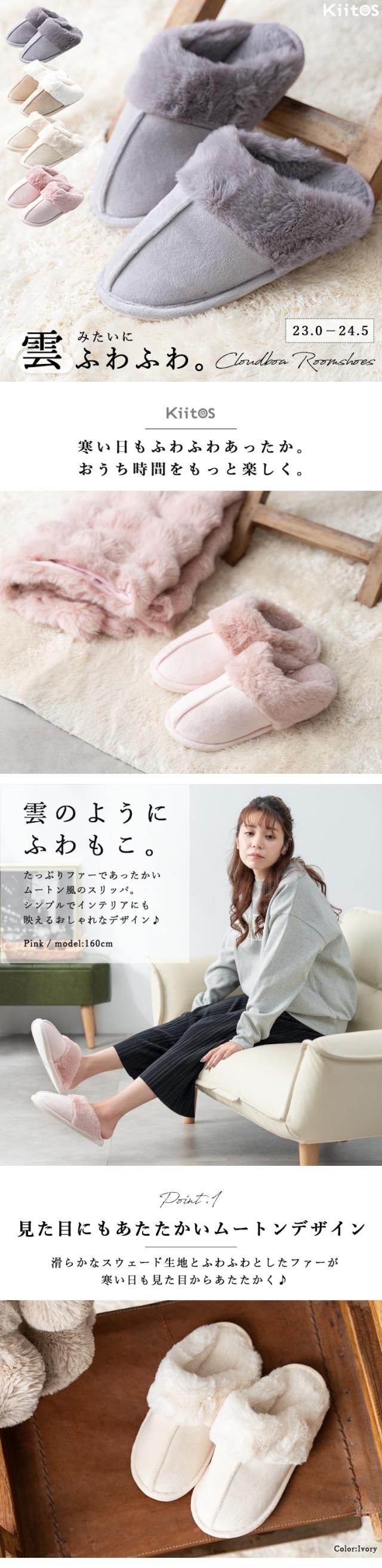 雲のようにふわふわもこもこしたボリューム感のあるムートン風のルームシューズ。