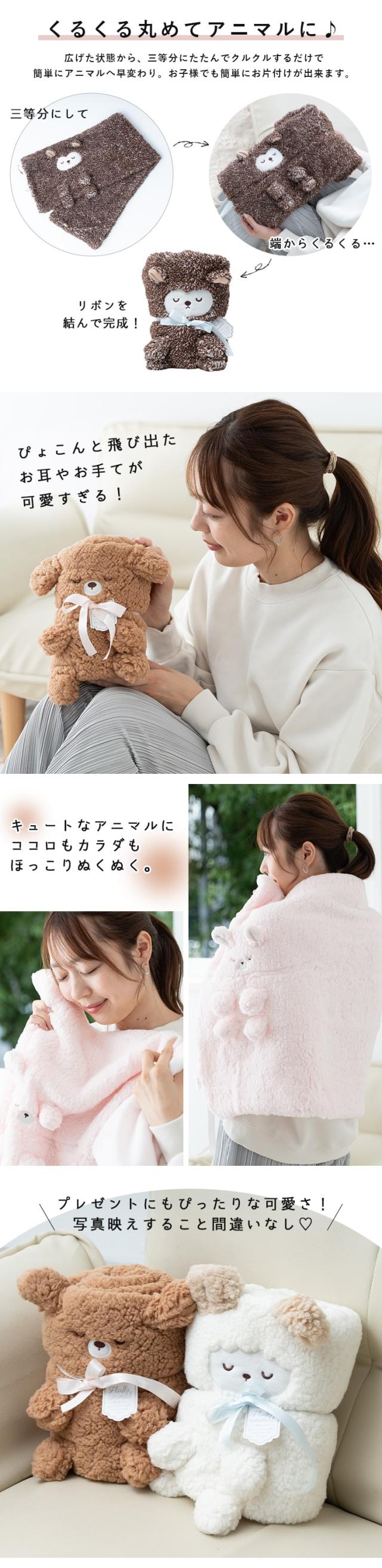ブランケット ひざ掛け かわいい おしゃれ プレゼント ギフト キャラクター アニマル 動物 フリース ふわふわ もこもこ ぬいぐるみ ボア レディース 女性 キッズ ベビー 赤ちゃん リボン ネコ 猫 ヒツジ ハリネズミ アウトドア キャンプ 秋 冬