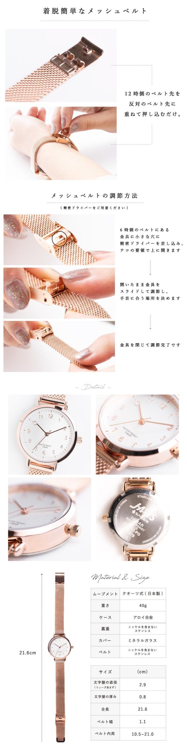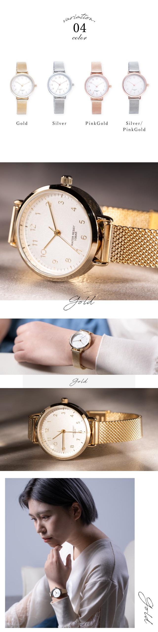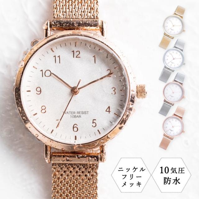 腕時計 防水 10気圧防水 レディース ニッケルフリーメッキ お肌に優しい アレルギー対応 メッシュベルト メタルベルト ゴールド 可愛い きれい おしゃれ シンプル 大人 仕事 通勤 通学 プレゼント ギフト 女性 メール便送料無料