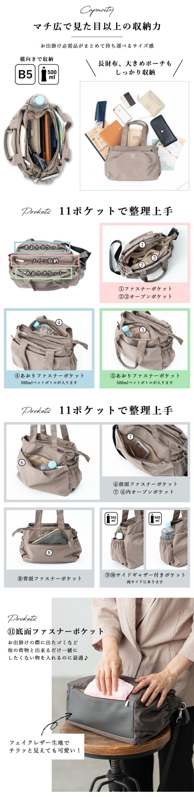 ショルダーバッグ レディース 斜め掛け 撥水 ブランド 2way トート ミニ ボストン 肩掛け 11ポケット 多機能 b5 自立 軽量 大人 上品 おしゃれ ナイロン ファスナー きれいめ かわいい 30代 40代 50代 通勤 通学 プレゼント ギフト