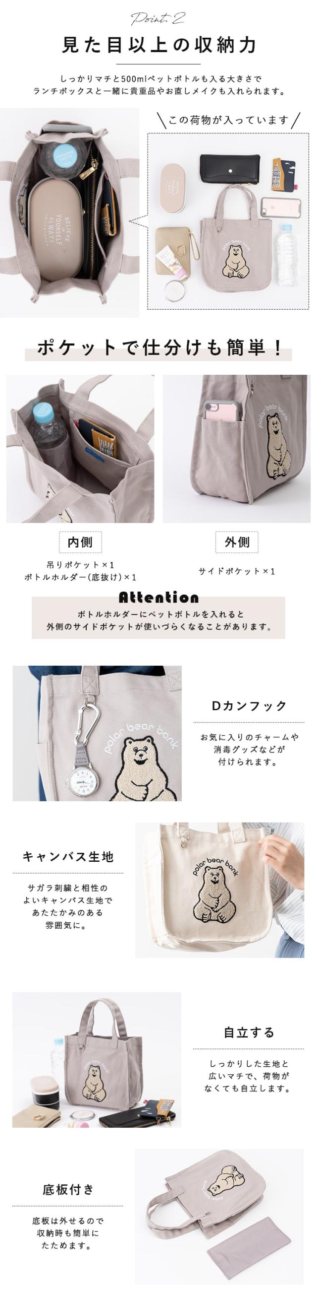 トートバッグ レディース 小さめ ブランド ポーラーベアーバンク polar bear bank サガラ刺繍 北欧 かわいい おしゃれ 自立 ペットボトル ランチバッグ サブバッグ ミニトート 通勤 通学 散歩 クリスマス プレゼント ギフト メール便送料無料