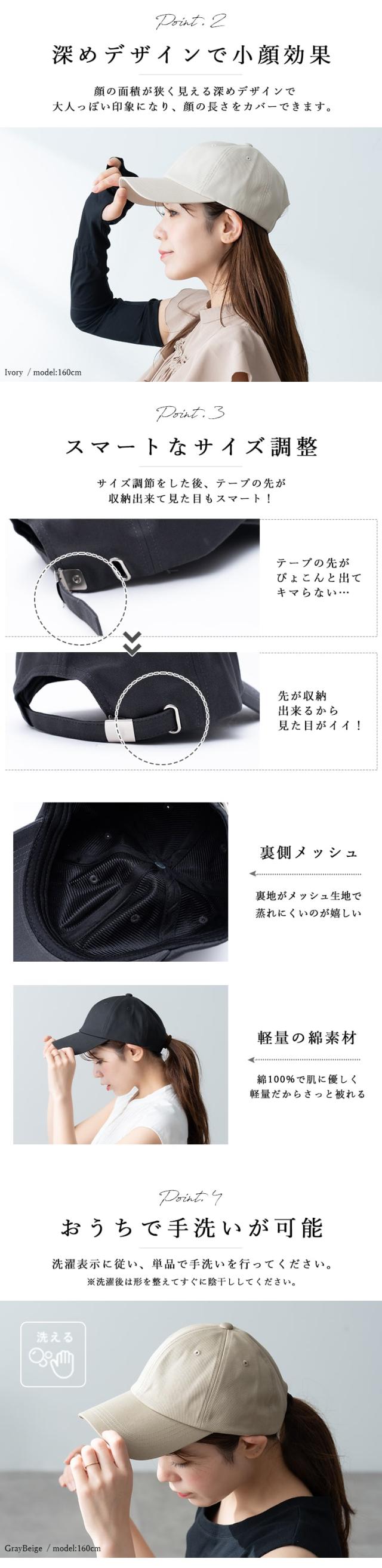 帽子 レディース キャップ 深め uvカット upf50+ 遮光 コットン 綿 春 夏 秋 裏メッシュ 洗える アウトドア 調節可 日焼け 防止 軽い 洗濯 かわいい おしゃれ ブランド 名入れ 無地 プレゼント ギフト