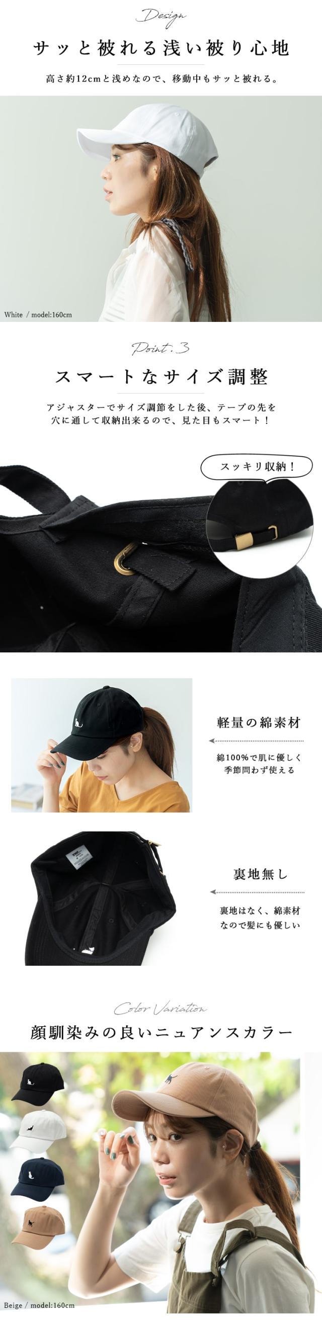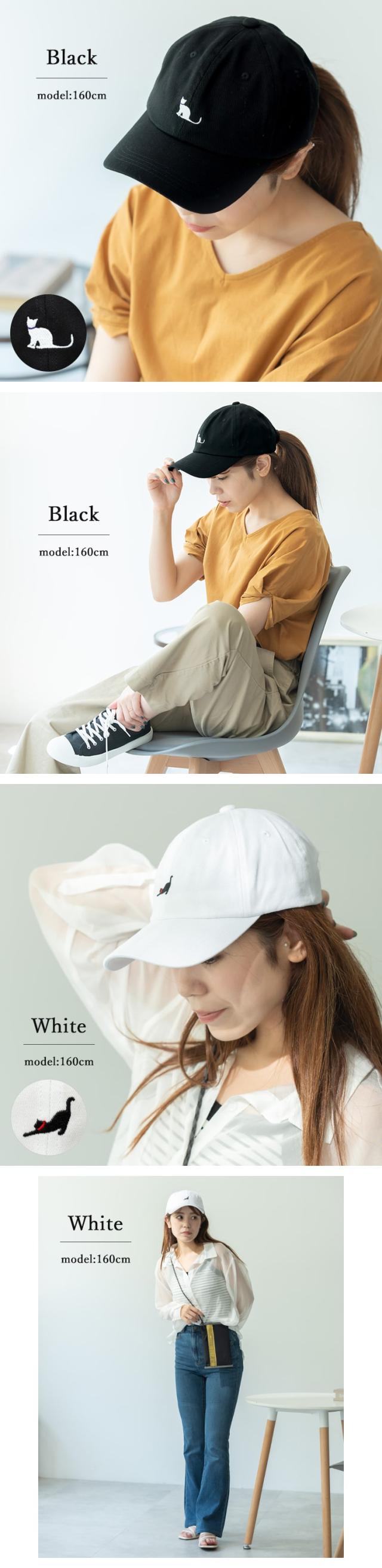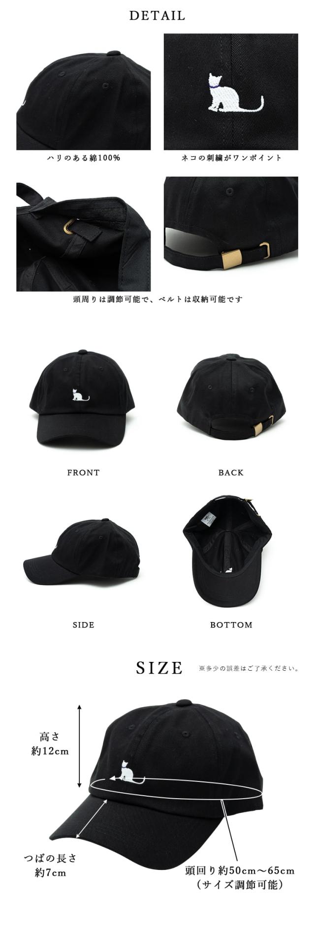 帽子 レディース キャップ 猫シルエット 刺繍 浅め ローキャップ サイズ調整 uv かわいい おしゃれ 大人 綿 コットン 女子 無地 春 夏 秋 ネコ プレゼント ギフト