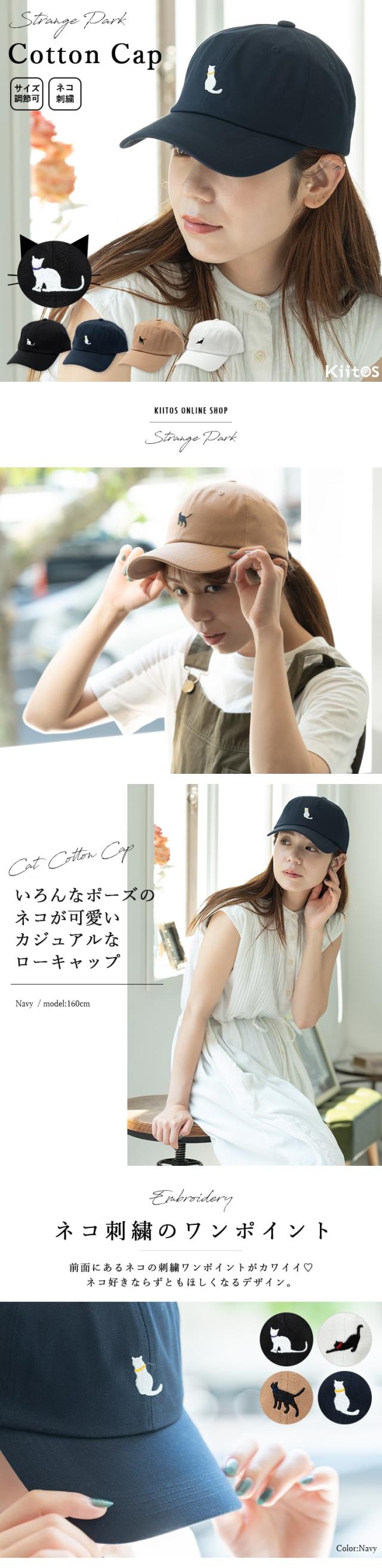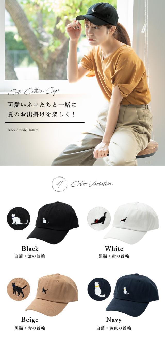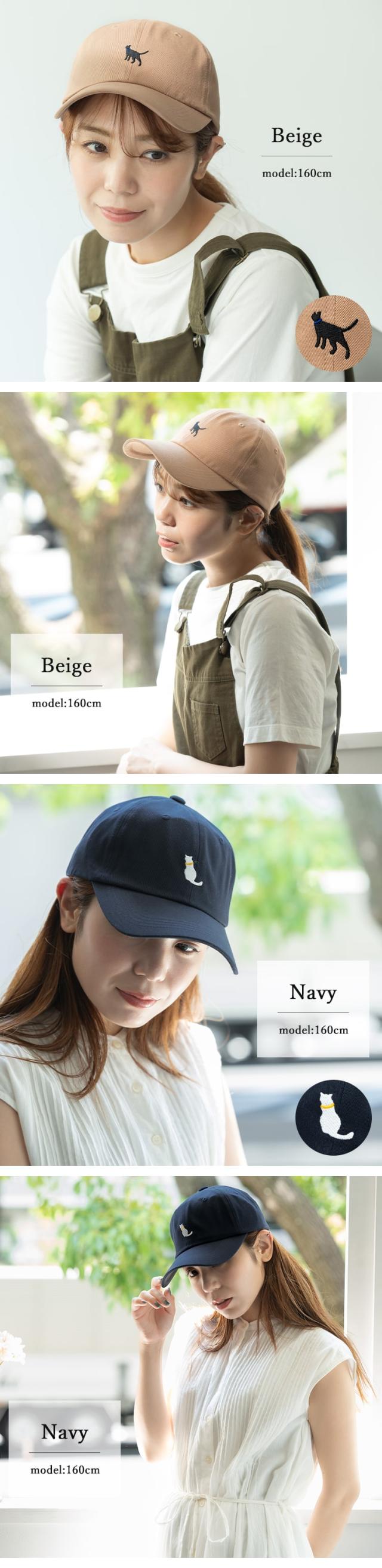帽子 レディース キャップ 猫シルエット 刺繍 浅め ローキャップ サイズ調整 uv かわいい おしゃれ 大人 綿 コットン 女子 無地 春 夏 秋 ネコ プレゼント ギフト