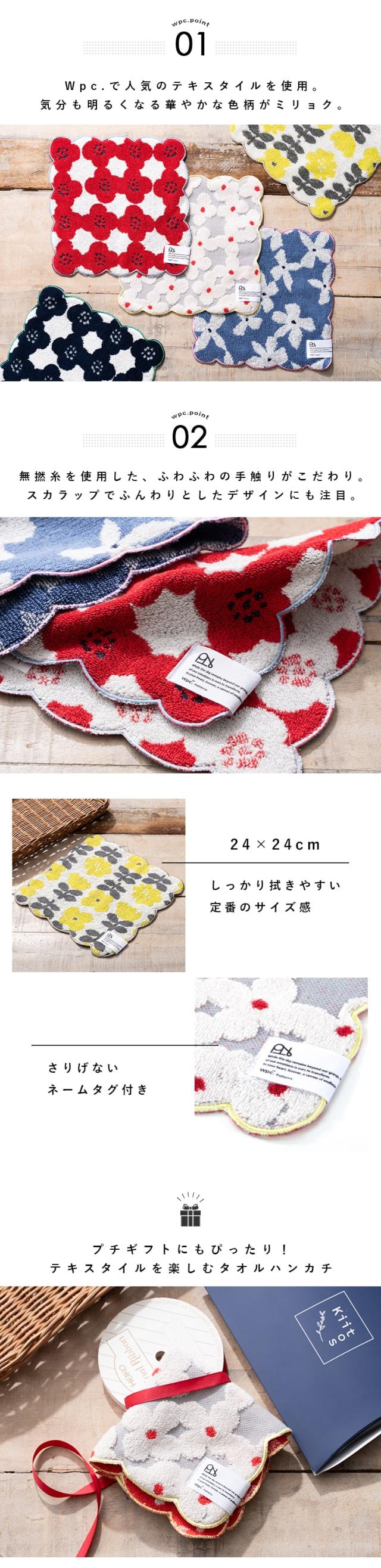 ハンカチ レディース ブランド w.p.c Patterns かわいい おしゃれ スカラップ ハンカチタオル ギフト プレゼント 綿100 コットン お礼 お返し プチギフト 花柄 北欧
