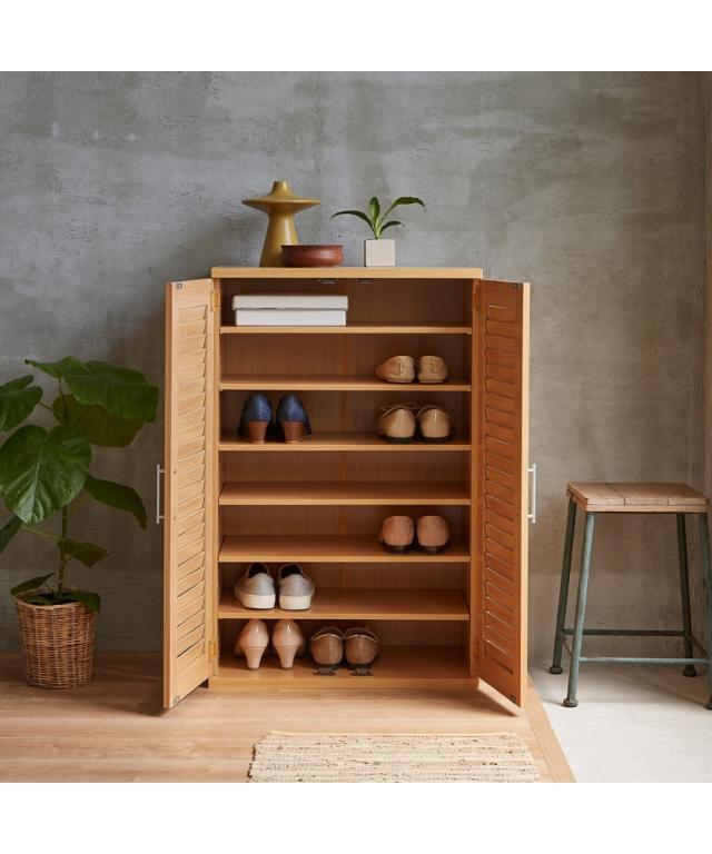 [keyword] 家具 収納 インテリア 木製 ナチュラル ベーシック シンプル 定番 おしゃれ 一人暮らし 大学生 社会人 ワンルーム 1K 1DK 新生活 [comment] ルーバーシューズボックス。省スペースながら驚きの大容量収納を実現。たくさんの棚が散らかりがちな靴をたっぷりと収納してくれます。固定棚1段・可動棚5段仕様。可動棚は3cmピッチで調節できるので、ロングブーツやヒールの高い靴も収納可能です。