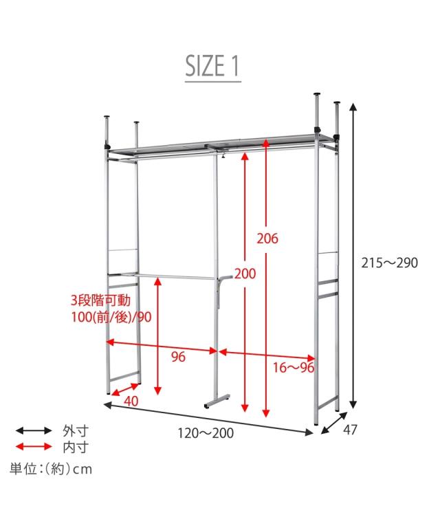 クローゼットハンガーシリーズ 突っ張り 幅120〜200cm