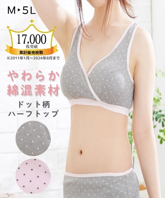ブラ マタニティ 大きいサイズ ママ 産前・産後 ドット柄クロスオープン 授乳 ハーフトップ 妊娠 ラージサイズ 桝谷 肌着 インナー M/L/LL ニッセン nissen