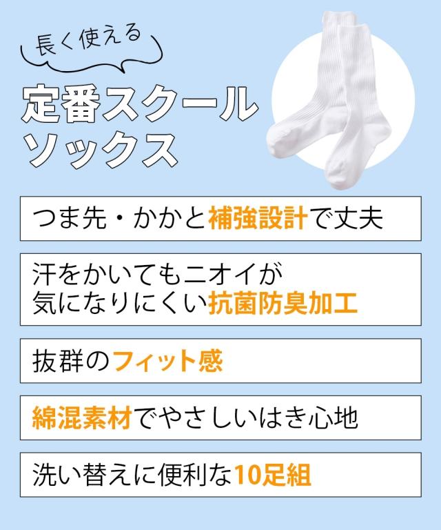 抗菌防臭 しっかり丈夫な無地スクールハイソックス10足組