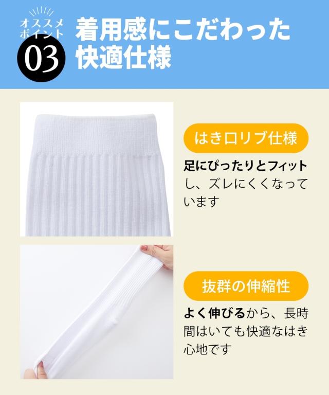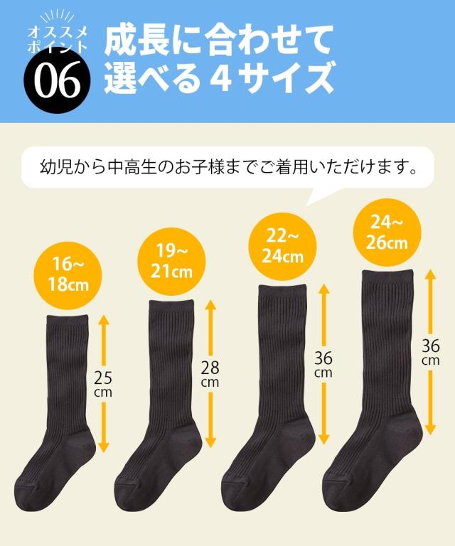 累計販売枚数313万足突破 ニッセンオリジナル 抗菌防臭 しっかり丈夫な無地スクールハイソックス10足組 ●丈夫なヒミツは糸の本数!● 通常のソックスの1.3倍の特別な編立てをしています。 丈夫さに自信あり! ~その他6つのポイント~ ■抗菌防臭加工 毎日汗をかいて活発に活動してもニオイが気になりにくいです。 ■つま先かかと補強設計 足の負荷かかかりやすいので補強編みをしています。 だから丈夫さ抜群です ■抜群のフィット感 伸縮性があり、長時間はいても快適なはき心地です。 足口はズレにくいリブ仕様です。 ■さらりとした綿混素材 綿を使った靴下ならではのやさしいはき心地です。 通気性がよく、普段使いにもぴったりです。 ■同色10足組 洗い替えや長期の旅行や合宿にも対応できます。 ■成長に合わせて選べる4サイズ 足の大きさが16cmから26cmまで対応できるので、幼児のお子様から中高生のお子様までご着用いただけます。 一度気にいっていただけると長くご着用いただけます。 同シリーズのクルー丈ソックスも取り扱っております。