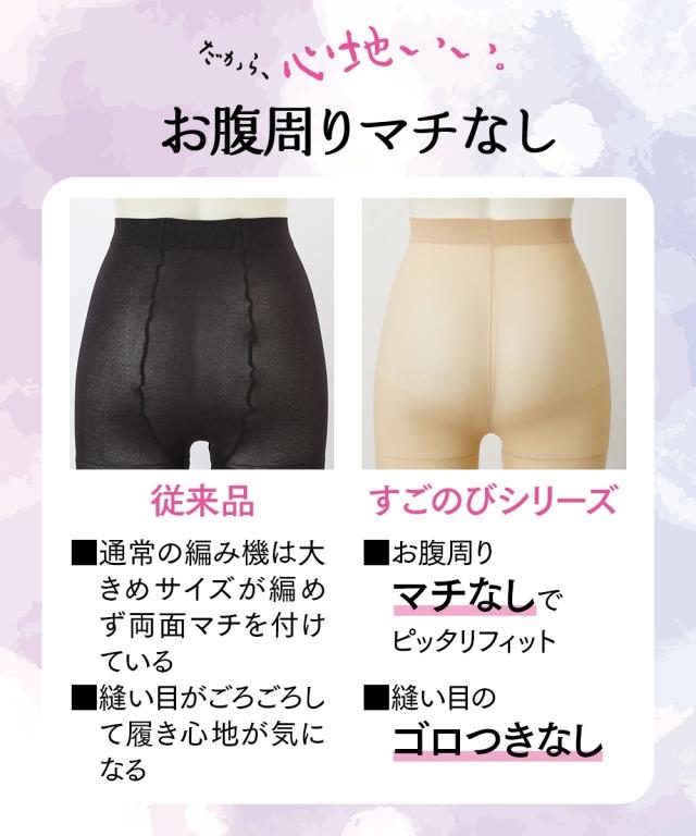 大人気のすごのびシリーズ! 30デニールの厚みがあるので、ストッキングのように見えてこっそりあたたか♪ オフィスにも、セレモニー用にもストッキングにみえるあったかタイツは大活躍!!