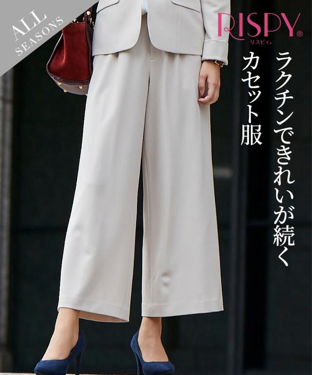 【レディーススーツ】セットアップ対応9分丈セミワイドパンツ(上下別売・すごく伸びる多機能変り織リスピィシリーズ)