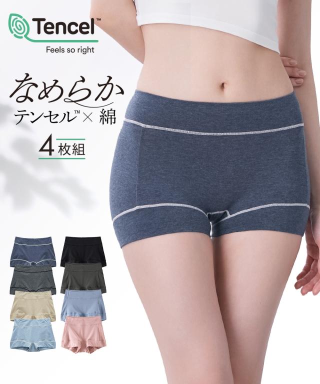 テンセルTM繊維・綿混ストレッチお腹脚口らくちん深ばきボックスショーツ4枚組