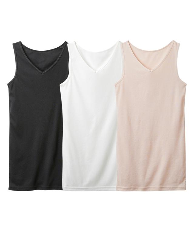 吸汗速乾 ロング丈綿混タンクトップ3枚組