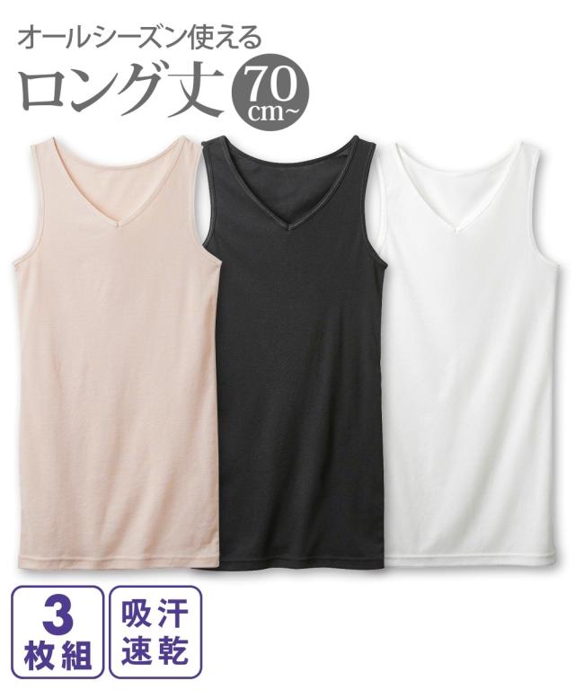 吸汗速乾 ロング丈綿混タンクトップ3枚組