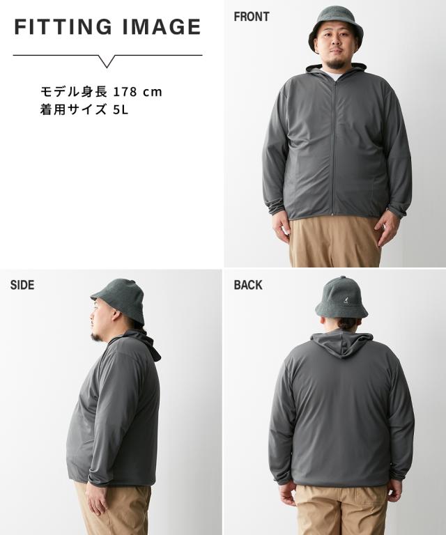 パーカー 大きいサイズ メンズ 吸汗速乾 UVカット 裏面メッシュ フルジップ 長袖 3L/4L/5L ダークグレー〜ロイヤルブルー カジュアル トップス ニッセン