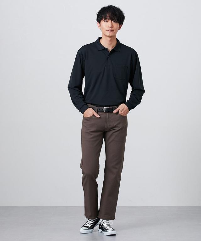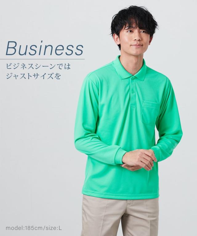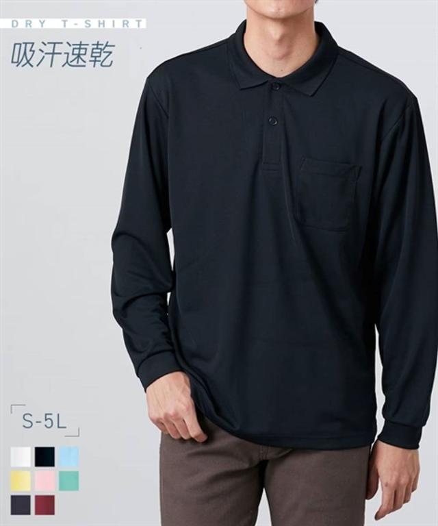 【吸汗速乾・UVカット】ポケット付きメッシュ長袖ポロシャツ