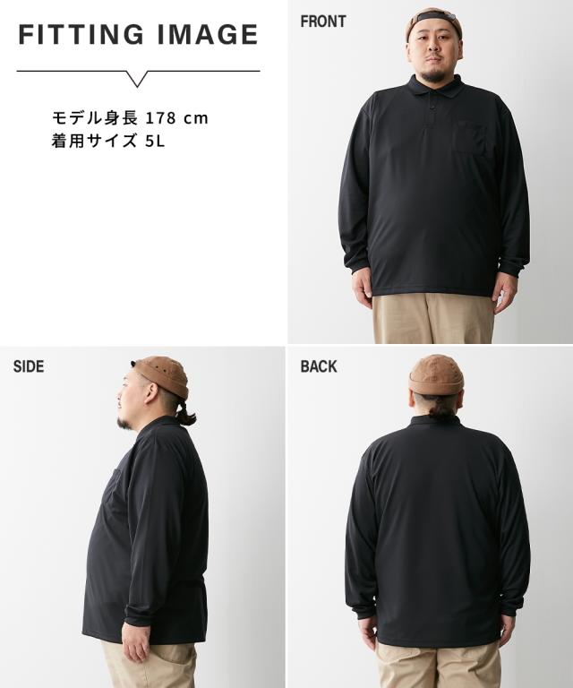 ポロシャツ 大きいサイズ カジュアル メンズ 吸汗速乾 UVカット ポケット付きメッシュ 長袖 トップス ネイビー〜ライトブルー 3L/4L/5L ニッセン