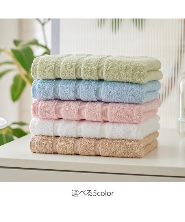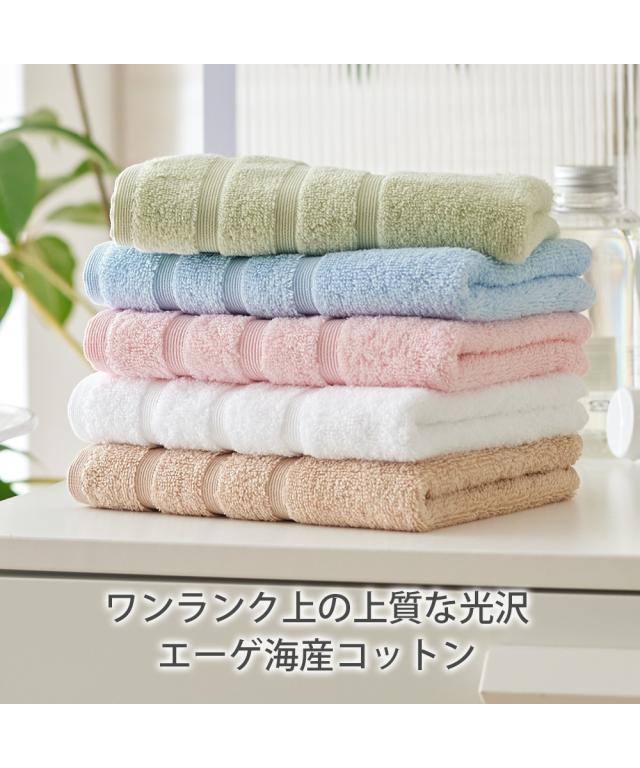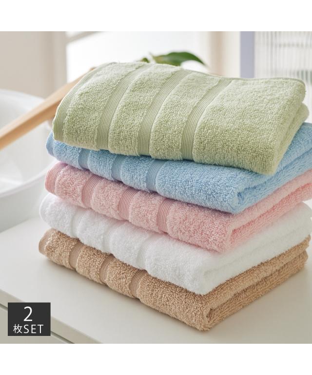 フェイスタオル エーゲ海 コットン 同色2枚組 ピンク/ブルー/ベージュ/ホワイト 約 34x80cm 吸水 ニッセン nissen