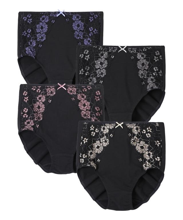 ショーツ スタンダード 大きいサイズ レディース 綿混 ストレッチ ブラックカラー 配色 レーシー 深ばき 4枚組 4L/5L/6L