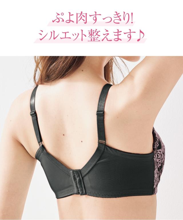 人気のカラフルパレットシリーズに脇背高タイプが登場!幅広のパワーネットによる脇背高設計で、脇や背中のぷよ肉をおさえてすっきりシルエットに。カップ上辺のゴムがバストにしっかりフィットしてパカパカ浮きも軽減します。お揃いのショーツは別売りです。