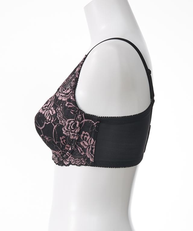 カラフルパレット脇背中高い編レースブラジャー(ビッグフラワー柄)