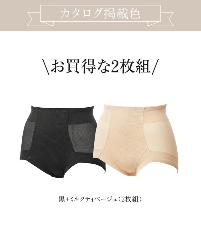 [keyword] 下着 ランジェリー インナー 大きいサイズ レディース ゆったりサイズ プラスサイズ レースなし おしゃれ [comment] ヒップもお腹もキュッと引き締めながら、ウエスト前中央部や脚口(マチ部除く)は折り返し仕様。ゴムが直接肌にあたらないからラクなはき心地です。身生地は爽やかな透け感がありながらパワーのあるネット素材で暑い季節も快適。洗い替えに便利な2枚組。