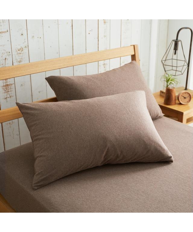 枕カバー 同色2枚組 綿100% 天竺ニット ネイビー/ブラウン/ライトグレージュ/ライトグレイッシュブルー 43×63cm用 寝装 寝具 ニッセン nissen