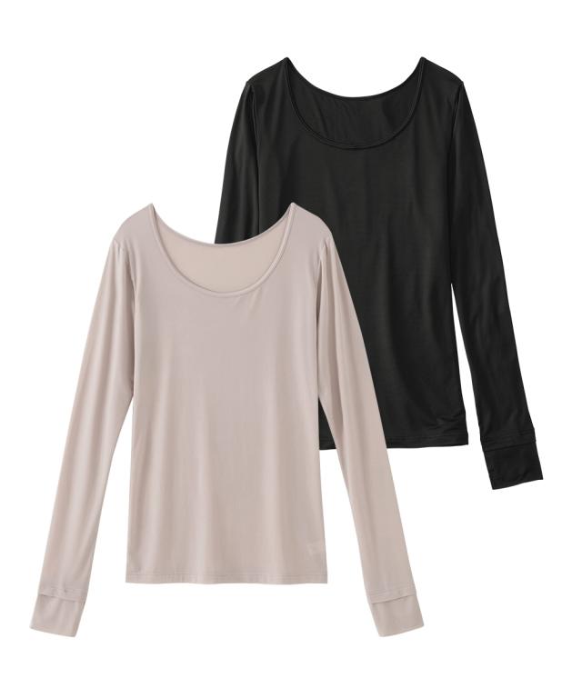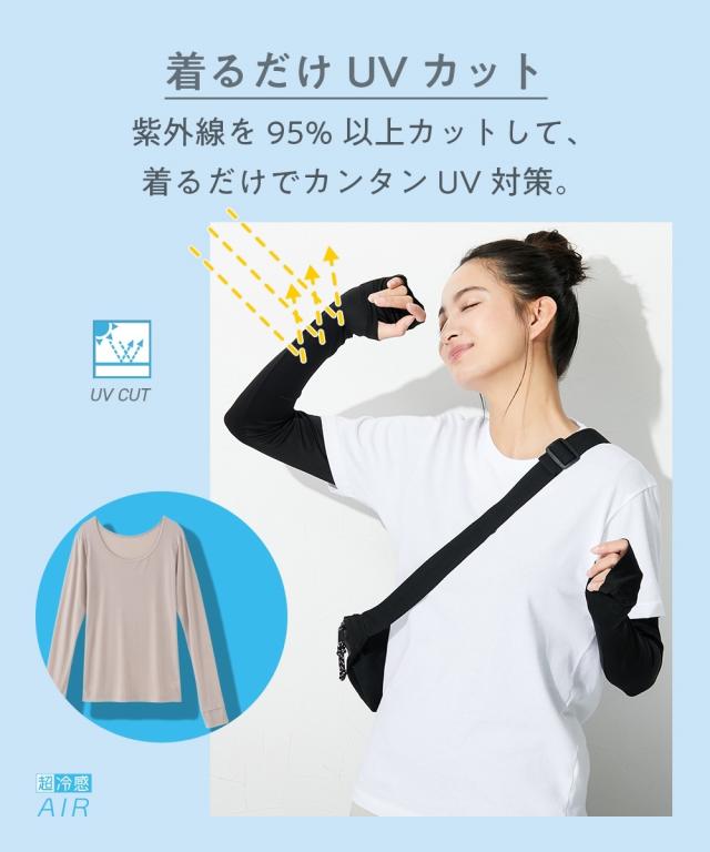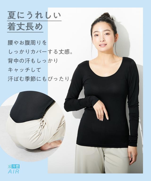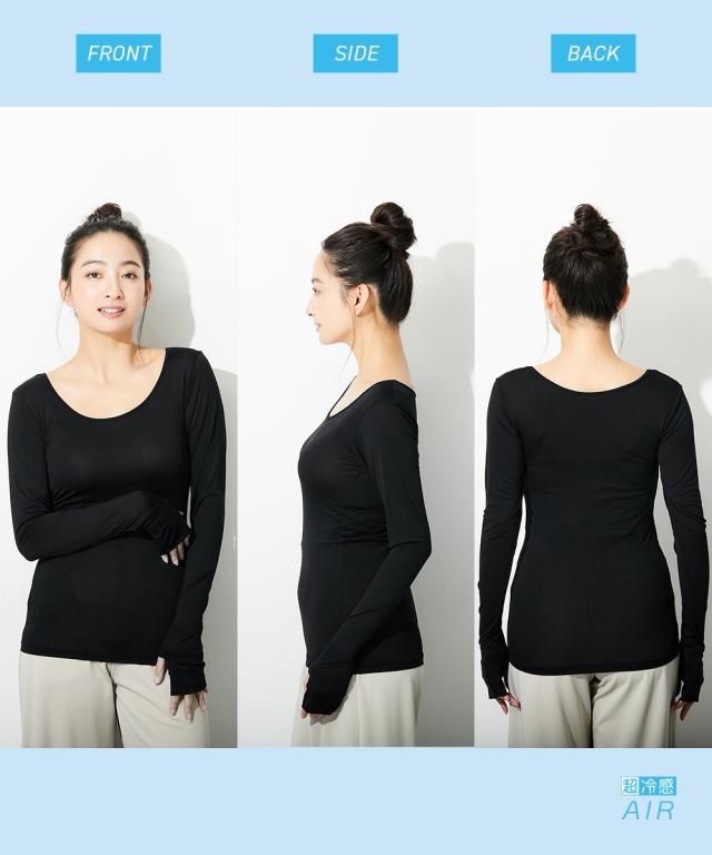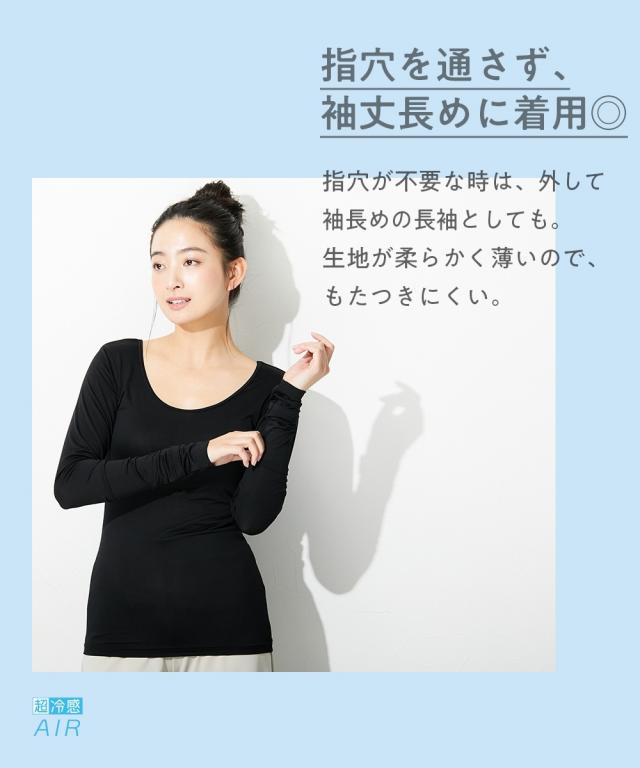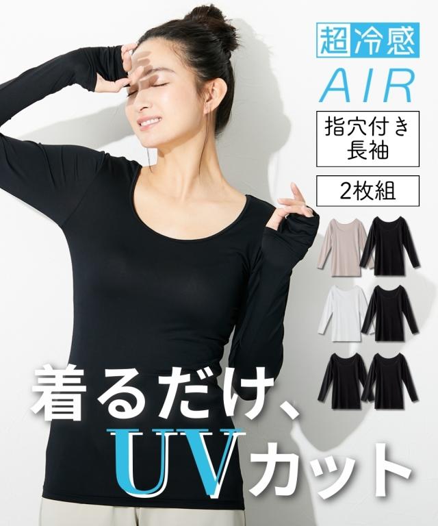 レディース 超冷感 AIR 指穴付き ロング丈 長袖 接触冷感 吸汗速乾 UVカット インナー 2枚組 LL/3L