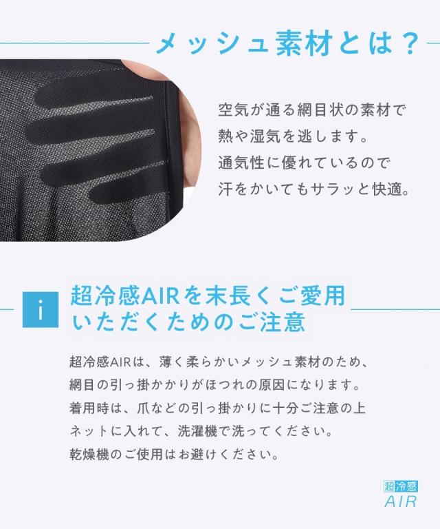 超冷感シリーズの中でもメッシュ素材の【超冷感AIR】は、柔らかいメッシュ素材で通気性のある生地が特徴です。