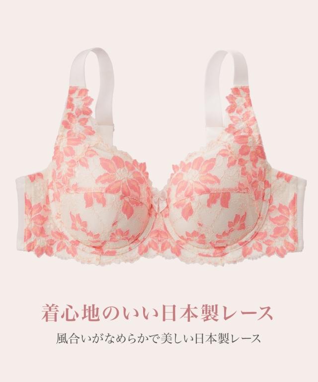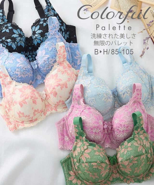 ブラジャー ワイヤー入り 大きいサイズ レディース カラフルパレット フルカップ スウィートフラワー 日本製 レース B85〜C105
