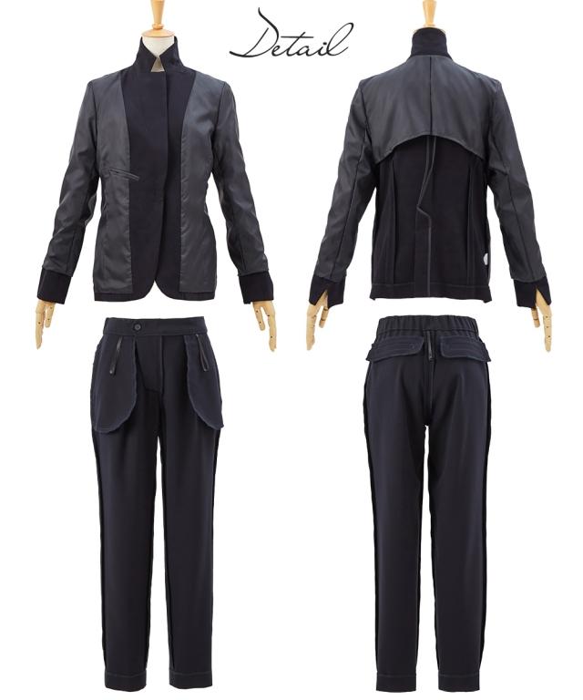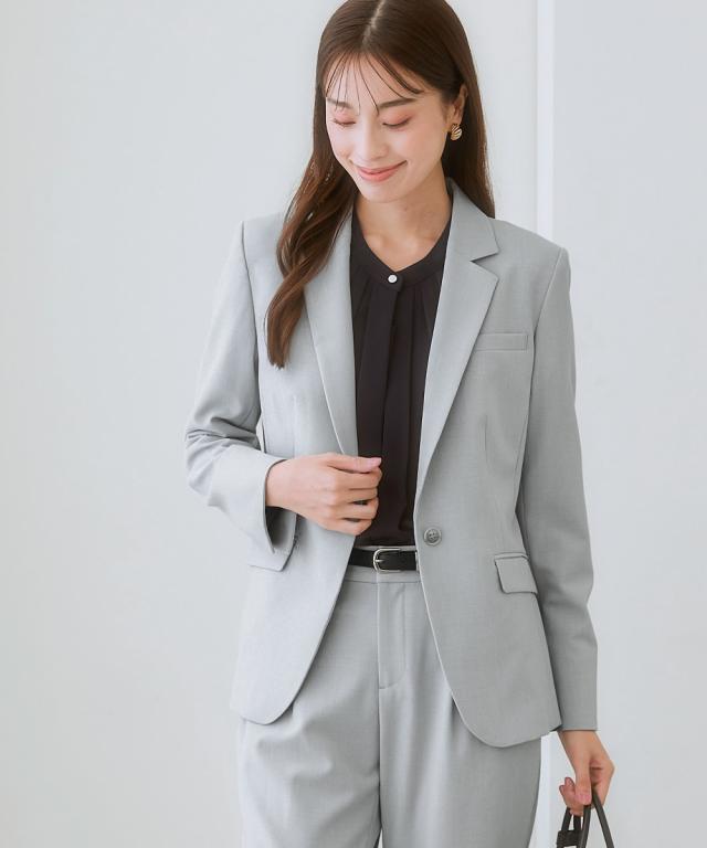 【レディーススーツ】タテヨコストレッチテーラードパンツスーツ(ジャケット+9分丈テーパードパンツ)(パターン改良Ver)