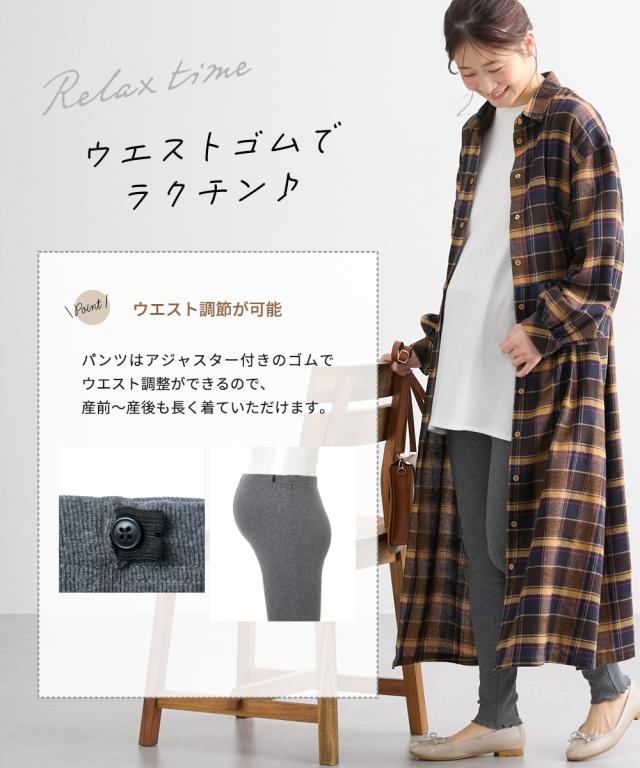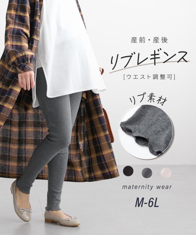 マタニティ パンツ 産前 リブ レギンス ウエスト調節可能 チャコール/黒 M/L 産前 産後 レディース ニッセン