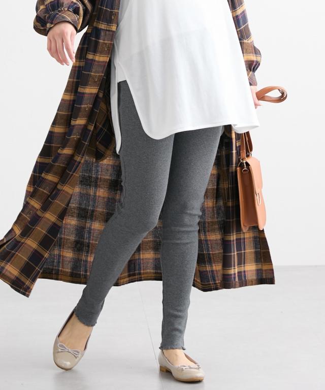 リブ素材の10分丈レギンス。