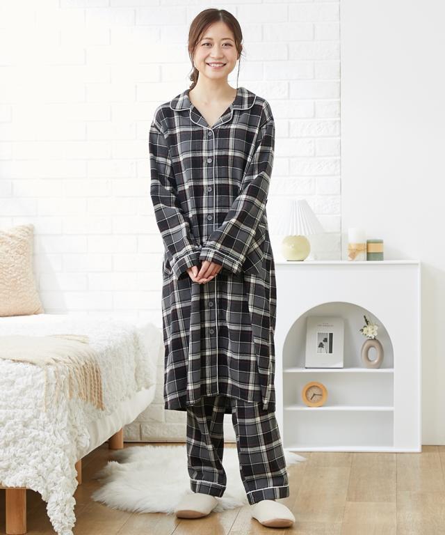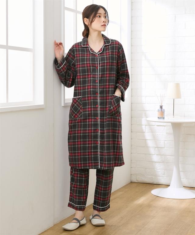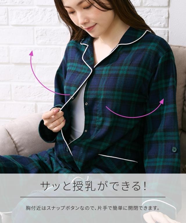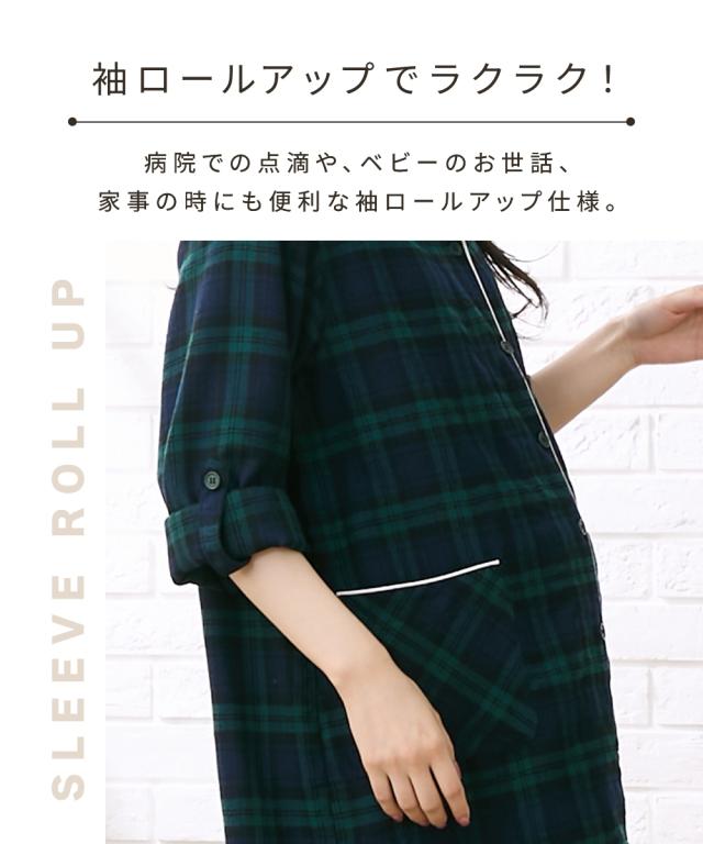 パジャマ マタニティ ママ 産前 産後 授乳服 袖 ロールアップ ビエラ起毛 前開き LL/3L